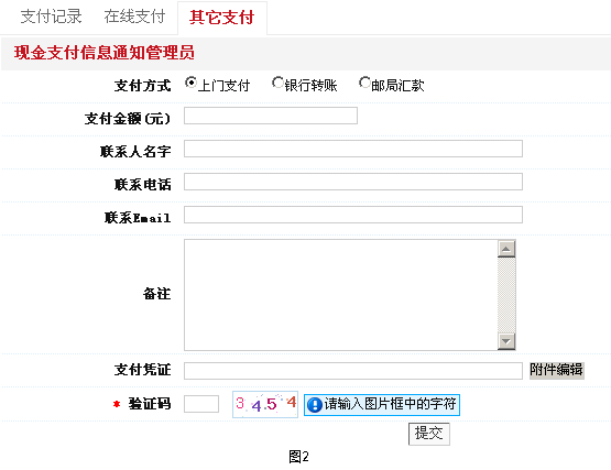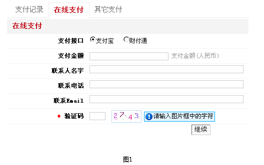 在充值余额之前,首先登录,进入会员中心,左侧栏导航中,找到财务管理-->点击在线支付或其它支付链接,进入相应页面,如图1、图2所示。根据表单上信息填写好正确内容。